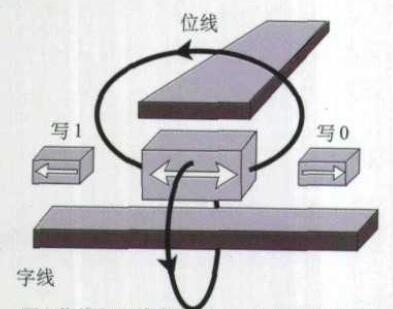 MRAM單元自由層產生的合成磁場來實現。在運行時,利用編碼排序使二維MRAM陣列中只有一條字線和一條位線通過電流(如圖1),因而只有一個MRAM單元被選中,這時可以有兩種寫人狀態(tài):