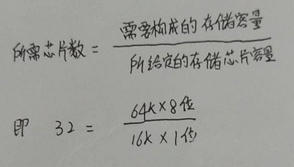 分析:64Kx8位,說明該存儲器是以8位構(gòu)成一個字,因此,每讀出一個字,需要選中8片16kx1位的存儲芯片,而一片能表示16k,因此一共需要64/16=4片,根據(jù)組合的原理,一共需要4x8=32片。